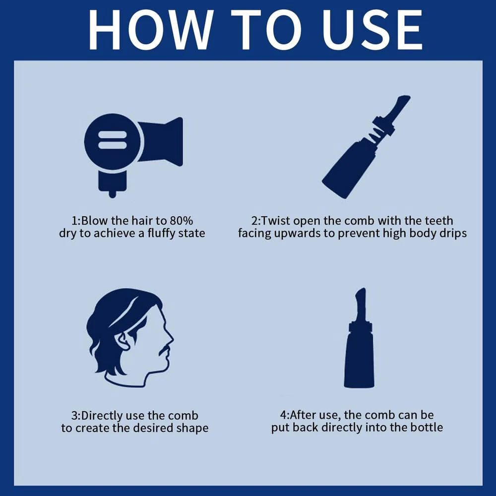 The gel bottle comes with a comb inside; hands do not need to touch the gel during the styling process.